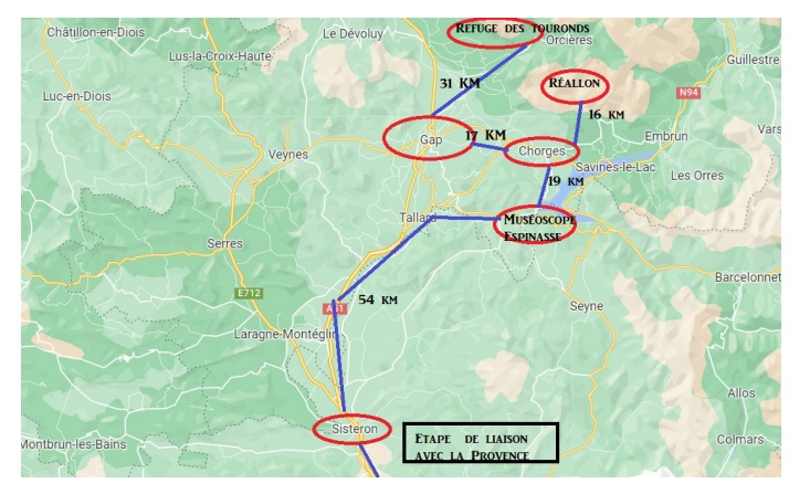 AVIS de nouveaux adhérents: Nous avons eu la chance que l’organisateur avait une très bonne connaissance de la région. Nous avions le programme pour la durée du circuit et les points GPS des lieux où aller. Même si le temps n’a pas été formidable, ces 10 jours ont été riches en découvertes, paysages, visite Apiland (la vie des abeilles), usine « l’occitane’, usine EDF du barrage de Serre-Ponçon…