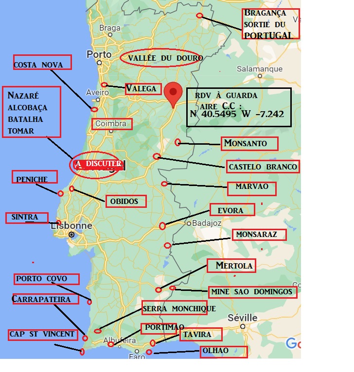 Les points forts de circuit sont les Castelos de l’ALENTEJO en frontière avec l’Espagne. Les monastères d’Alcobaça, Batalha et Tomar sont de petites merveilles. Les villes de Lisbonne et Porto ont été visitées lors d’un précédent voyage.