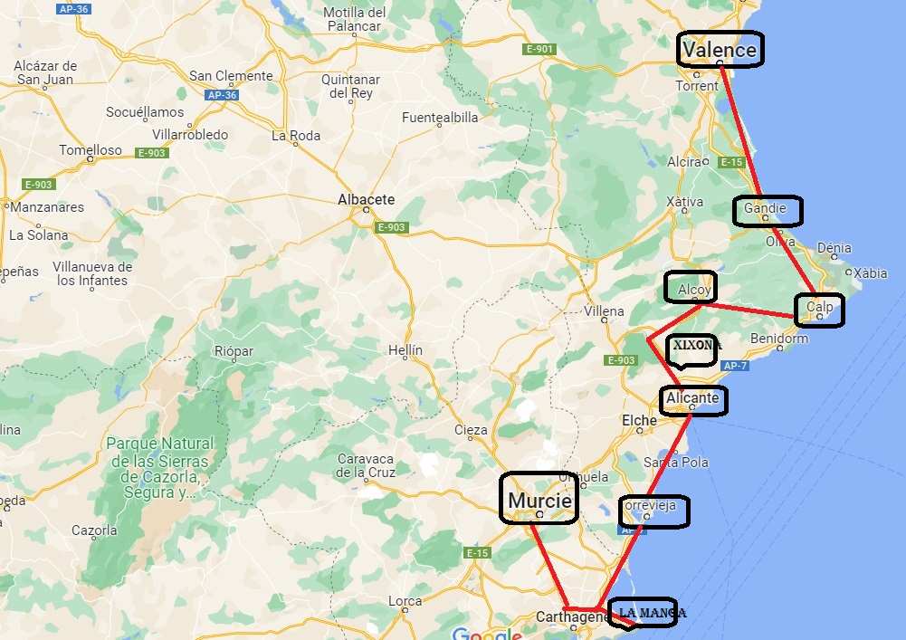 - De l’Escala à la provence de Murcia (Espagne)